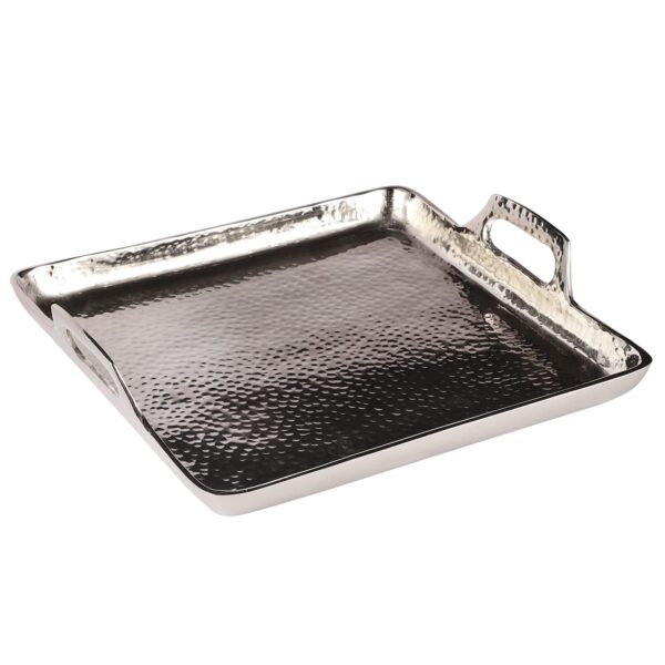 Aluminium Premium Leather Luxury Hammered Table Tray with Metal Handle Decorative Tray for Living Room